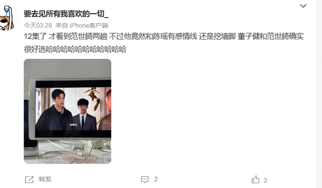 编剧在王鹤棣和范世錡之间也营造了一些卖腐线,暗戳戳的卖腐,作为笑点,但无论是角色搞笑的部分还是深沉的部分,范世錡都驾驭的很好。